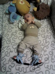„Po porodu mi hned nožky nikdo neukázal, až na mou žádost. Byly bohužel pokroucené víc, než bylo vidět na ultrazvuku ve 20. týdnu, ale všichni se mě snažili uklidňovat. Já sama jsem to stále brala tak, že budeme cvičit a spraví se to. Druhý den po porodu mi oznámili, že cvičení nebude stačit. První sádry jsem samozřejmě obrečela. Prošli jsme celou sérií sáder, pak už nás připravovali na tenotomii. Přestože byla zpočátku v horším stavu levá nožka, spolupracovat nechtěla ta pravá. Naštěstí nebyla tenotomie nakonec potřeba, za což jsem vážně ráda,“ popisuje první týdny maminka Klára.
