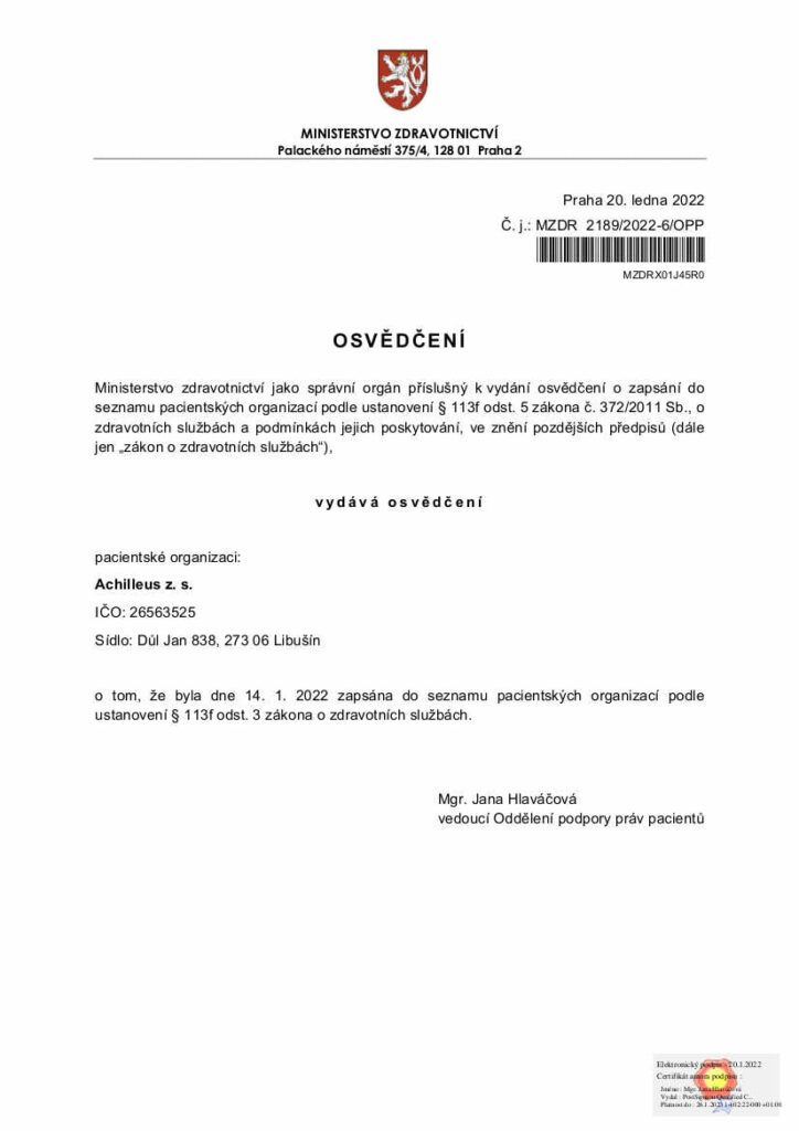 Číst dáleAchilleus z.s. získal osvědčení a oficiálně se stal pacientskou organizací
