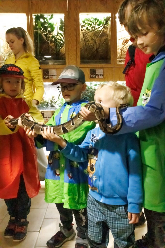 Malí i velcí se zúčastnili soukromé komentované prohlídky zoo, kde se dozvěděli, která lama s oblibou plive a jak velký klokan se vejde do kapsy své matky. O krmení nebyla nouze. Lamy, ale i chameleona jsme si nejen pohladili, ale i nakrmili. Závěrem prohlídky jsme si potěžkali Krajtu královskou a tím jsme překonali veškeré fobie.